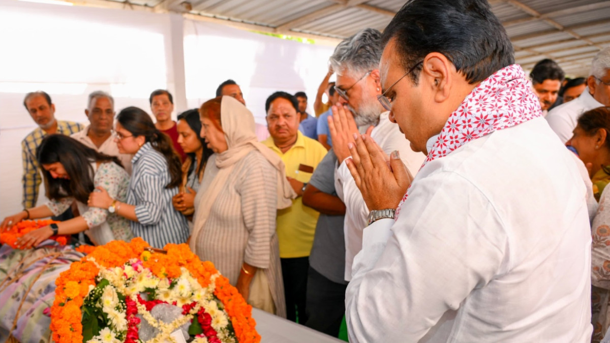 #WATCH | Jaipur | Rajasthan CM Bhajanlal Sharma pays last respects to Neeraj Udhwani, who was killed in the Pahalgam terror attack pic.twitter.com/Ri8mg5BQbQ