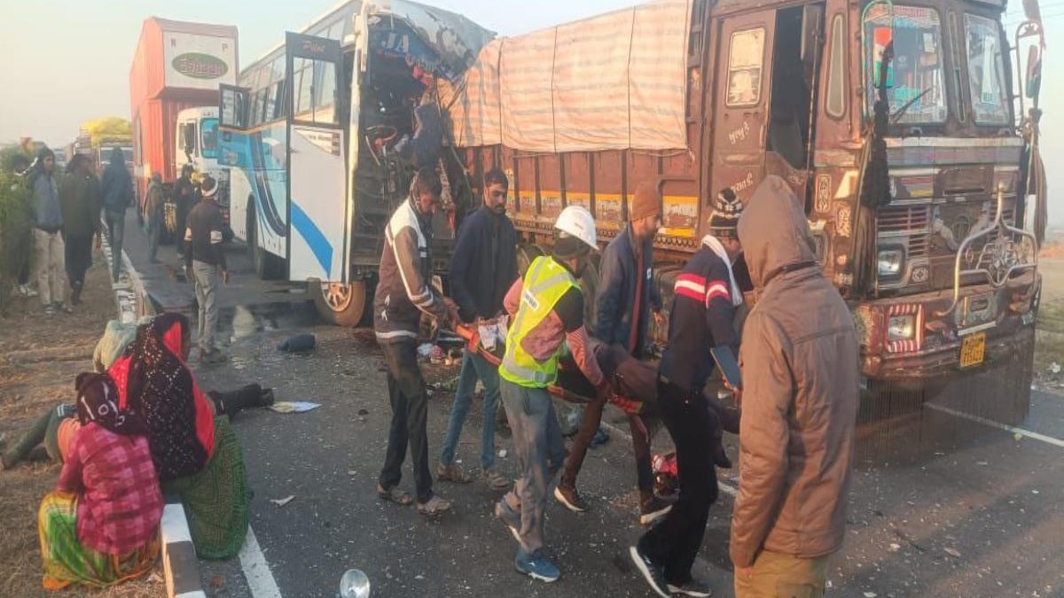 गुजरात से राजस्थान जा रही स्कूल बस ट्रेलर से टकराई, मौके पर दो की मौत, बस में 52 लोग थे सवार
