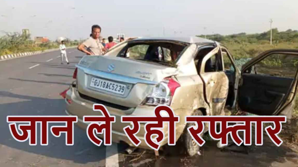 भीषण हादसा: नेशनल हाईवे पर दौड़ रही कार का अचानक फटा टायर, डिवाइडर तोड़कर नाले में गिरी, मां-बेटे सहित 5 की मौत