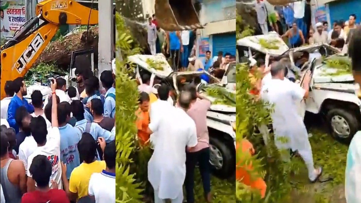 जयपुर में बोलेरो पर गिरा पेड़: स्कूल प्रिंसिपल की मौके पर मौत, क्रेन की मदद से बाहर निकाला