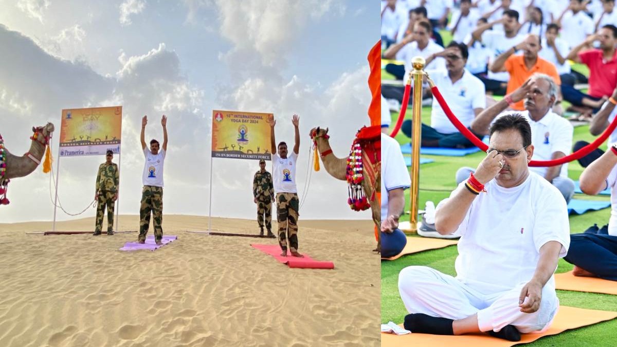International Yoga Day: राजस्थान में पानी और रेत के टीलों पर योगाभ्यास, CM भजनलाल ने मंत्रियों के साथ किया योग