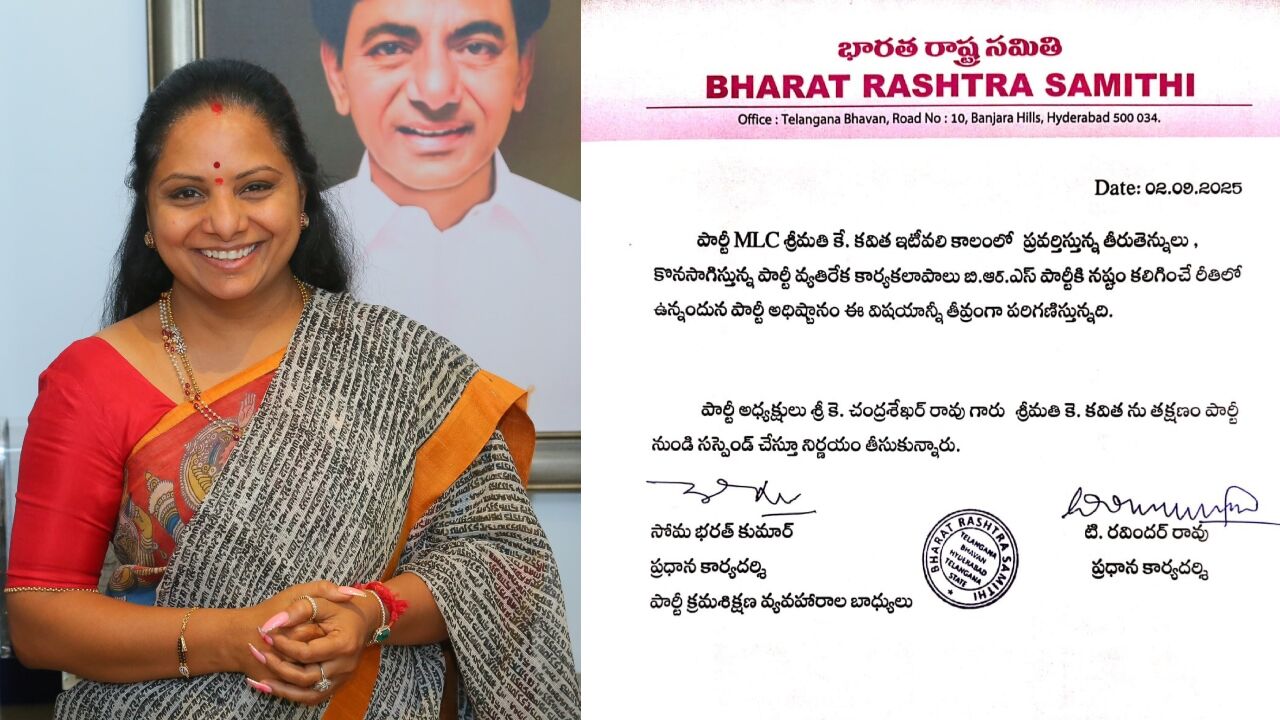 के कविता के खिलाफ मंगलवार, 2 सितम्बर को यह कार्रवाई उस समय की गई है, जब उन्होंने पार्टी के वरिष्ठ नेताओं हरिश राव और जोगिनपल्ली संतोष कुमार पर गंभीर आरोप लगाते हुए सार्वजनिक रूप से अपनी नाराजगी व्यक्त की।