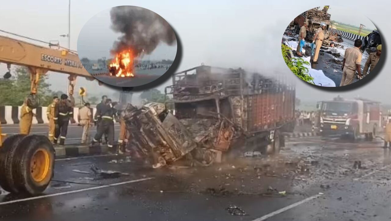 अलीगढ़ में दर्दनाक हादसा: कार-कैंटर में टक्कर के बाद लगी आग, 4 दोस्त जिंदा जले, ड्राइवर की भी मौत