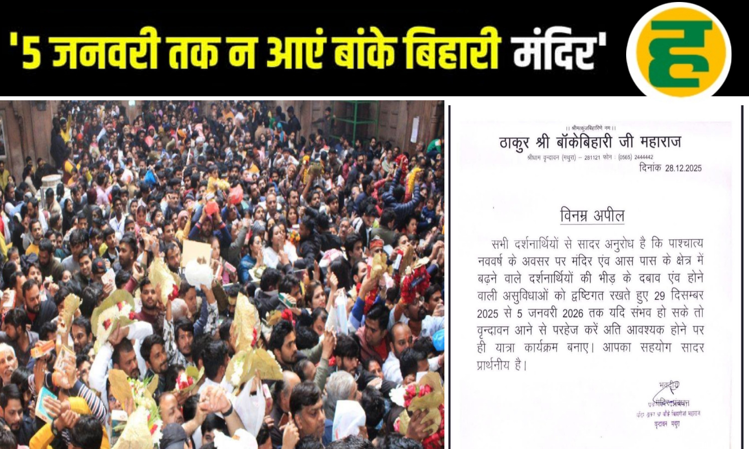श्री बांके बिहारी मंदिर के प्रबंधक मुनीष शर्मा ने आधिकारिक एडवाइजरी जारी करते हुए कहा है कि नववर्ष के दौरान देशभर से लाखों श्रद्धालु वृंदावन पहुंचते हैं। संकरी गलियों और मंदिर परिसर की सीमित क्षमता के कारण श्रद्धालुओं को भारी दिक्कतों का सामना करना पड़ सकता है।
