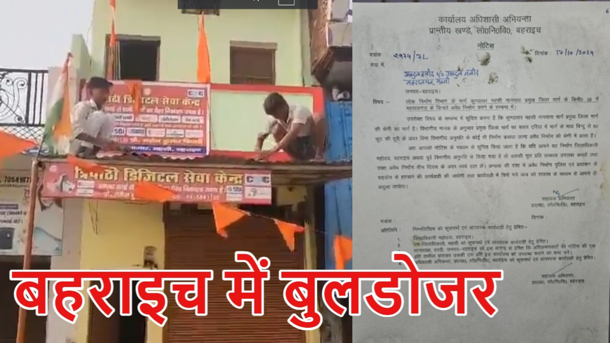 Bahraich Violence: यूपी के बहराइच में बुलडोजर एक्शन की तैयारी है। शुक्रवार (18 अक्टूबर) रात PWD विभाग ने महाराजगंज स्थित 23 मकानों पर नोटिस चस्पा किया है।