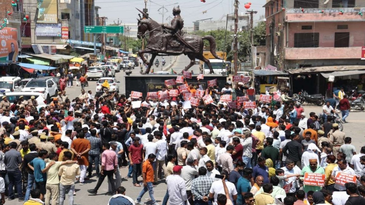 UP News: महाराणा प्रताप की प्रतिमा पर झंडा लगाने पर धरने पर बैठे भाजपा कार्यकर्ता, मूर्ति को पानी से धोया, सपा कार्यकर्ताओं पर FIR