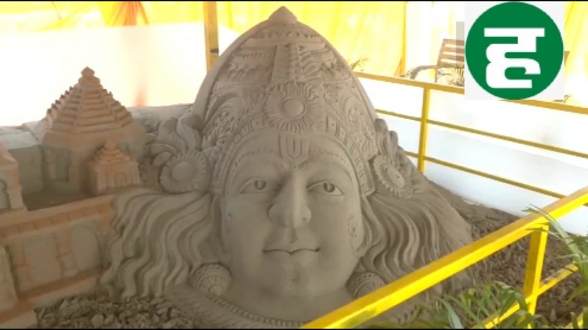 #WATCH अयोध्या: रेत कलाकार नारायण साहू ने राम मंदिर 'प्राण प्रतिष्ठा' समारोह से पहले रेत से श्री राम मंदिर और भगवान राम की कलाकृतियां बनाईं। pic.twitter.com/4mbgBQJuBK