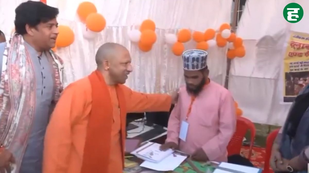 #WATCH | Uttar Pradesh CM Yogi Adityanath met a Muslim youth who sings Hindu bhajan, at the ‘Divine Art and Skill Exhibition’ in Gorakhpur earlier today.
