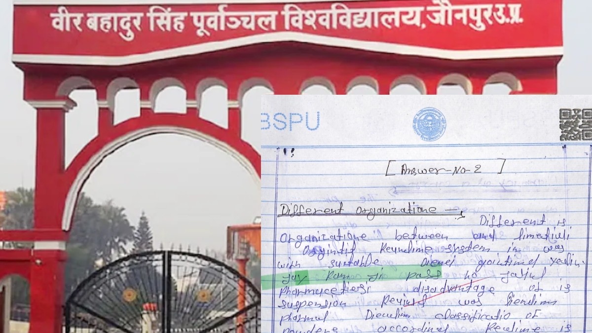 Student Viral: उत्तर प्रदेश के जौनपुर की वीर बहादुर सिंह पूर्वांचल यूनिवर्सिटी में गजब का मामला सामने आया है। जहां आंसर शीट की जांच में कई अनियमितता सामने आई है। कॉपी में आंसर की जगह जय श्री राम पास कर दीजिए और अन्य कई चीजें लिखी हुईं थी। इस घटना का खुलासा RTI के जरिए हुआ। यूनिवर्सिटी की कुलापति वंदना सिंह ने कहा कि मामले के सामने आने के बाद दो प्रोफेसर को कार्य मुक्त करने की संस्तुति की गई है।