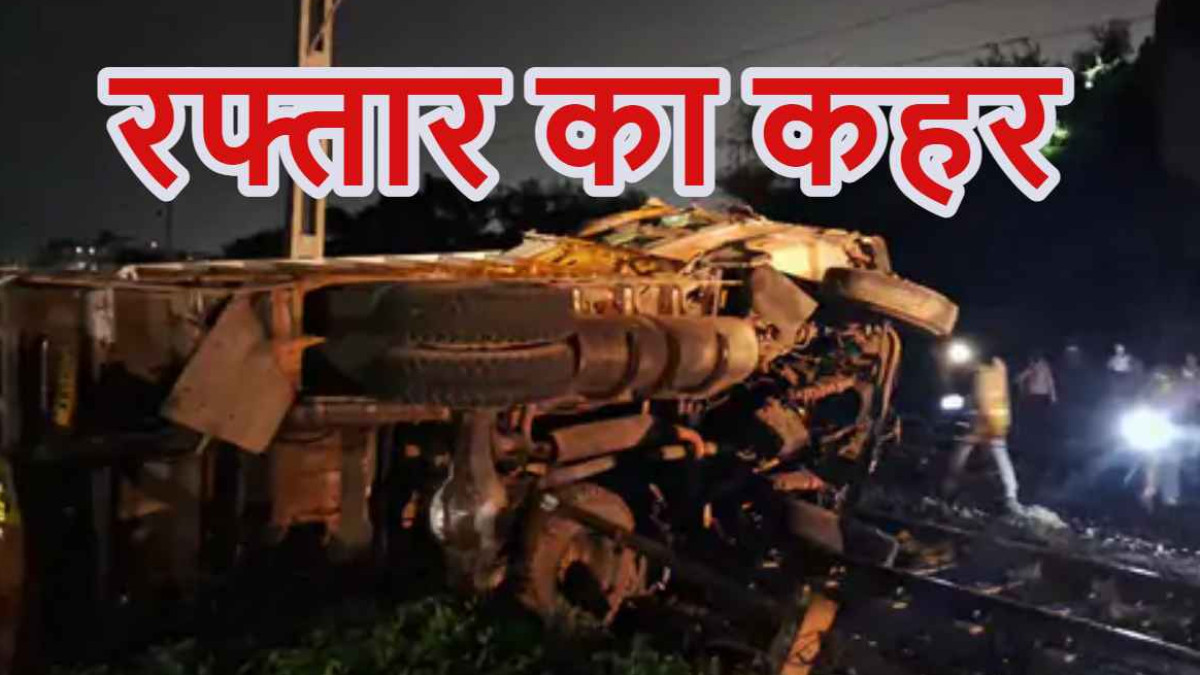 कानपुर में भीषण हादसा: तेज रफ्तार ट्रक रेलिंग तोड़कर पुल से 40 फीट नीचे रेलवे ट्रैक पर गिरा, ड्राइवर की मौत