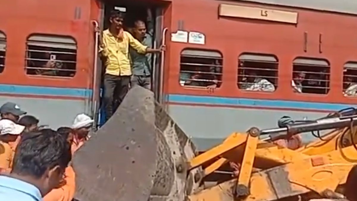 लोकमान्य तिलक एक्सप्रेस JCB से टकराई: UP के चंदौली में रेलवे की बड़ी चूक, यात्री ट्रेन से कूदकर भागे