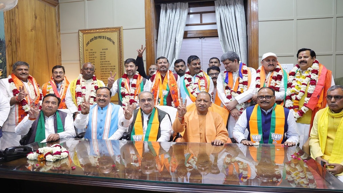 यूपी में MLC की 13 सीटें खाली हो रही हैं। जिसमें भाजपा ने अपने 7 प्रत्याशी उतारे हैं और 3 सीट पर सहयोगी दल के प्रत्याशी हैं। सभी MLC प्रत्याशी के भाजपा कार्यालय पहुंचने पर प्रदेश अध्यक्ष भूपेंद्र चौधरी ने सभी का स्वागत किया। सुभासपा ने नामांकन के आखिरी दिन विच्छेलाल राजभर को अपना प्रत्याशी बनाया है। तो वहीं एक सीट पर अपना दल के आशीष पटेल, दूसरी पर रालोद के योगेश चौधरी प्रत्याशी बनाए गए हैं।