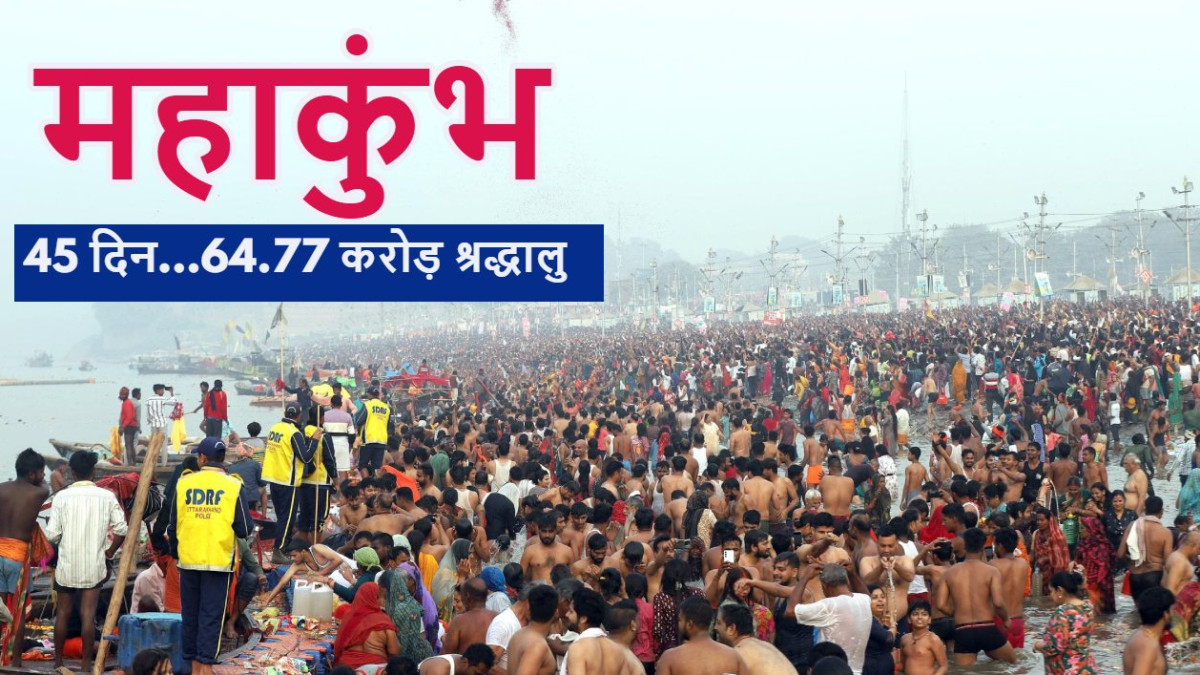 Prayagraj Maha Kumbh 2025: प्रयागराज में बुधवार (26 फरवरी) को महाशिवरात्रि पर अमृत स्नान के साथ महाकुंभ 2025 का समापन हो गया। हालांकि मेला परिसर खाली होने में अभी समय लगेगा। महाकुंभ के अंतिम दिन संगम में करीब डेढ़ करोड़ श्रद्धालुओं ने पवित्र स्नान किया। 13 जनवरी से अब तक 45 दिन में 64 करोड़ 77 लाख लोगों ने संगम में पवित्र डुबकी लगाई है।