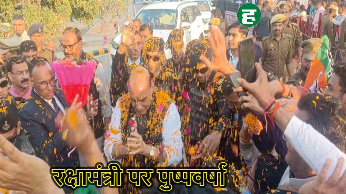रक्षामंत्री पर पुष्पवर्षा: लोकसभा प्रत्याशी बनाए जाने के बाद लखनऊ पहुंचे राजनाथ सिंह का अभूतपूर्व स्वागत, बोले-पूरे देश में यही लहर
