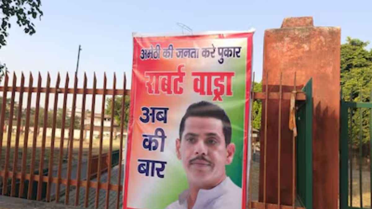 Robert Vadra Posters in Amethi: उत्तर प्रदेश की अमेठी लोकसभा चुनाव पर पांचवें चरण में 20 मई को मतदान होगा। नामांकन दाखिल करने की आखिरी तारीख 3 मई है। नेहरू-गांधी परिवार की गढ़ रही इस लोकसभा सीट पर भाजपा ने मौजूदा सांसद और केंद्रीय मंत्री स्मृति ईरानी को अपना उम्मीदवार घोषित किया है, वहीं कांग्रेस ने अभी तक अपना उम्मीदवार घोषित नहीं किया है। इस बीच अमेठी में पोस्टर के जरिए रॉबर्ट वाड्रा की लोकसभा प्रत्याशी के रूप में मांग एक बार फिर से शुरू हो गई है। ये पोस्टर कांग्रेस दफ्तर के बाहर नजर आ रहे हैं।