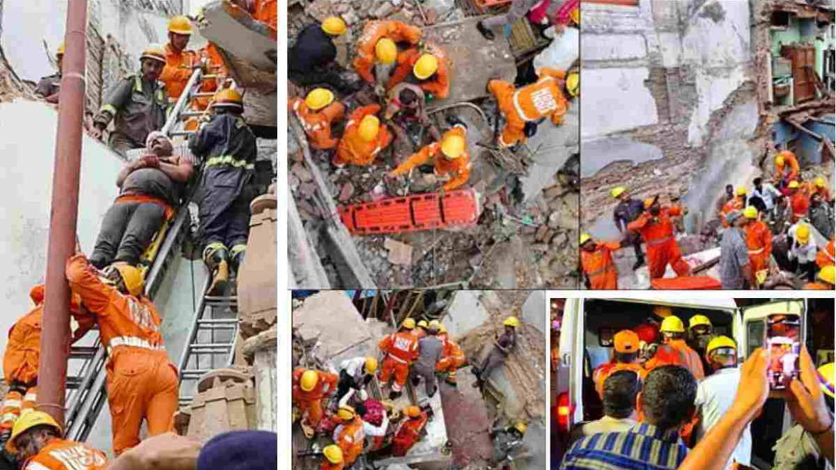 वाराणसी में 70 साल पुराने मकान गिरे, 9 लोग मलबे में दबे: 1 की मौत, बचाव कार्य में घायल हुई महिला आरक्षक