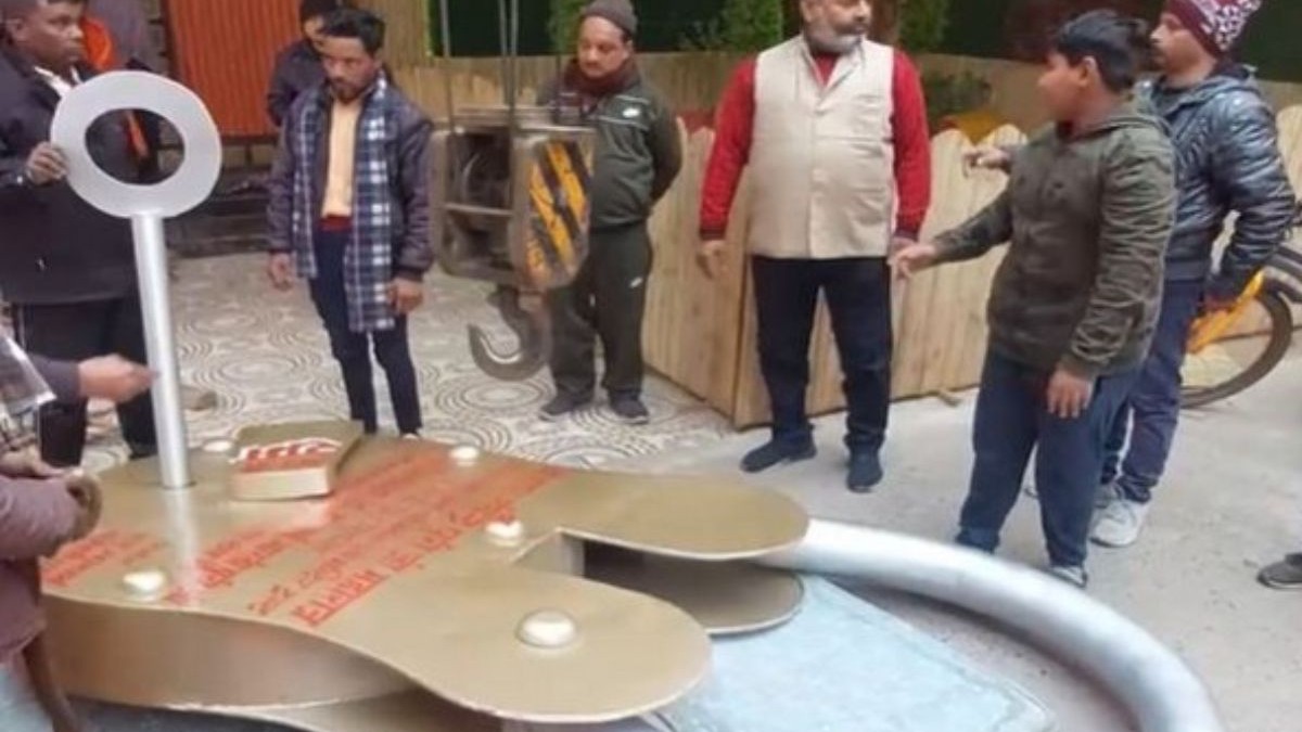 World Largest Lock For Ayodhya Ram Mandir: अयोध्या में राम मंदिर उद्घाटन का काउंटडाउन शुरू हो चुका है। इस बीच दुनिया का सबसे बड़ा ताला अयोध्या भेजा गया। ताले का वजन 400 किलो यानी चार क्विंटल है। शुक्रवार को अलीगढ़ में ताले की विधि-विधान से पूजा-अर्चना हुई। इसके बाद अलीगढ़ के नौरंगाबाद की महामंडलेश्वर अन्नपूर्णा भारती पुरी ताला लेकर अयोध्या के लिए रवाना हो गईं। ताले को गाड़ी में रखने के लिए क्रेन बुलाई गई। ताला देखने के लिए लोग जुट गए और जय श्री राम के नारे लगाए।