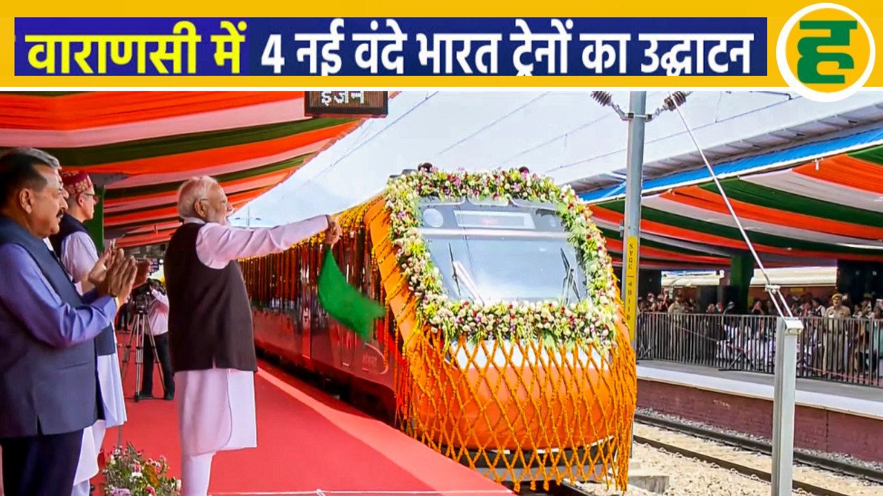 पीएम मोदी ने बनारस रेलवे स्टेशन से एक साथ चार नई वंदे भारत एक्सप्रेस ट्रेनों को हरी झंडी दिखाकर राष्ट्र को समर्पित किया।