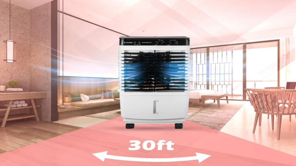 25 लीटर की क्षमता वाला Candes CoolWave Air Cooler हाई-परफॉर्मेंस पर्सनल और पोर्टेबल एयर कूलर है, जिसे आप ऑफिस या घर के लिए इस्तेमाल कर सकते हैं। इस पोर्टेबल एयर कूलर में हनीकॉम्ब पैड और एयर स्पीड कंट्रोल के लिए 3-वे स्पीड सेटिंग्स दी गई हैं।
