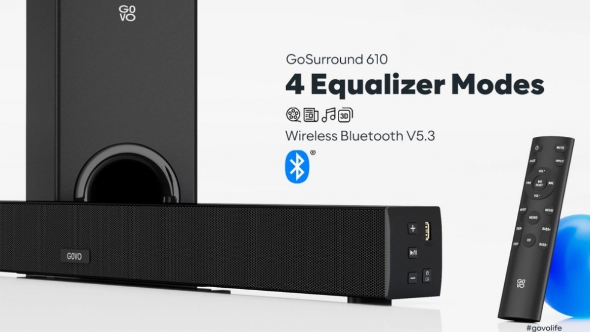 GOVO GoSurround 610 साउंडबार ब्लूटूथ V5.3, HDMI, AUX और USB सहित मल्टीपल कनेक्टिविटी ऑप्शन प्रदान करता है, जिससे कई प्रकार के डिवाइजेस से कनेक्ट करना आसान हो जाता है। इसका स्टाइलिश रिमोट बास और 4 ऑटो इक्वलाइज़र मोड का मैन्युअल कंट्रोल प्रदान करता है।