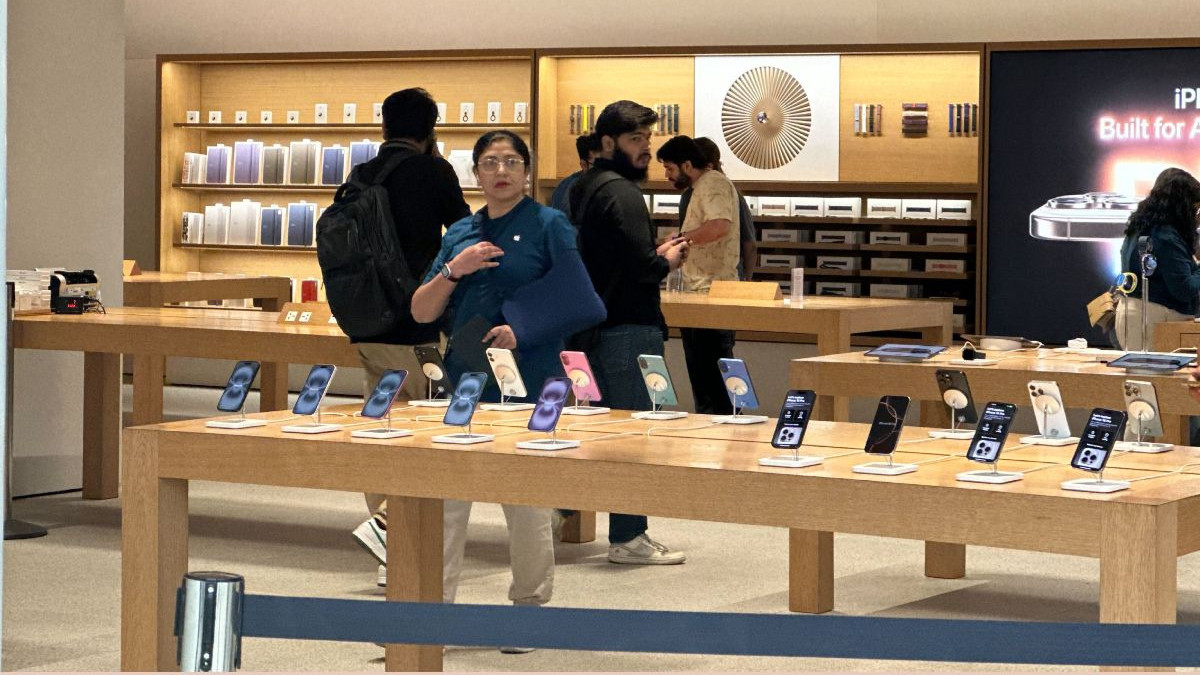 #WATCH | Long queues seen outside the Apple store in Delhi's Saket