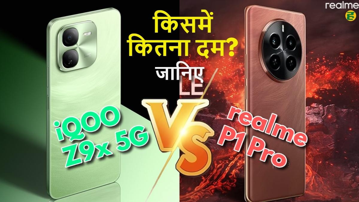 iQOO Z9x 5G vs realme P1: रियलमी और आईक्यू ने अपने दो नए स्मार्टफोन लॉन्च किए हैं। इन दोनों फोन का मार्केट में भयंकर कॉम्पिटिशन हैं। हम यहां इनका कंपेरिजन बता रहे हैं।
