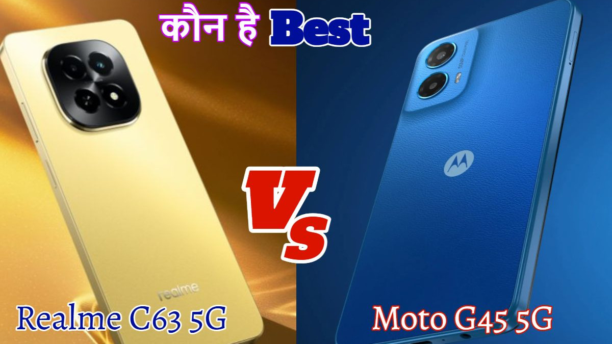 Moto G45 5G vs Realme C63 5G comparison: क्या आप 10 हजार की कीमत में कोई नए फीचर वाला लेटेस्ट स्मार्टफोन तलाश रहे हैं? यदि हां, तो हाल ही में पॉपुलर ब्रांड रियलमी ने भारत के एंट्री सेगमेंट मार्केट में एक नया 5G फोन Realme C63 लॉन्च किया। यह फोन सस्ती कीमत पर दमदार फीचर्स ऑफर करता है।