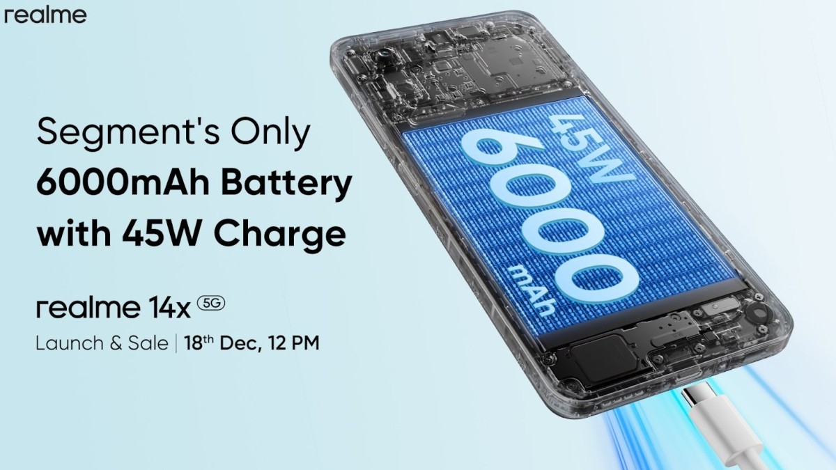 Realme 14x 5G Launch Date: रियलमी ने अपने नए स्मार्टफोन Realme 14x 5G को 18 दिसंबर को लॉन्च करने की पुष्टि की है। यह डिवाइस 15 हजार रुपए से कम कीमत पर उपलब्ध होगा।