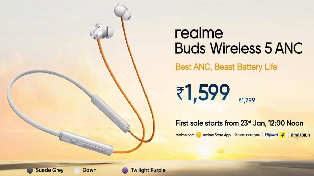 Realme Buds Wireless 5 ANC लॉन्च: 38 घंटे की बैटरी लाइफ के साथ मिलेगा शानदार ऑडियो; कीमत मात्र ₹1,799