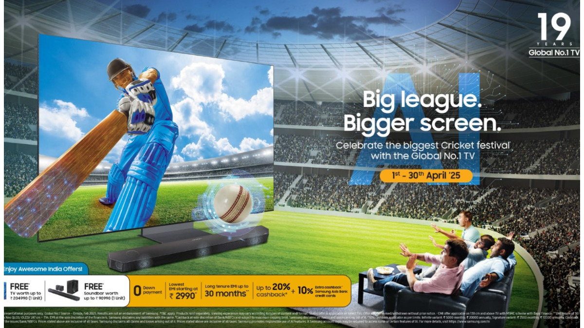 Samsung ‘Big League’ Sale: सैमसंग इंडिया ने अपने प्रीमियम बड़े स्क्रीन वाले टेलीविज़नों पर बेहतरीन ऑफर्स के साथ एक नया प्रमोशनल कैंपेन लॉन्च किया है। इस अभियान का नाम है ‘Big League. Bigger Screen’, जो पूरे अप्रैल महीने चलेगा और आईपीएल क्रिकेट सीज़न के अनुरूप है। यह पहल क्रिकेट फैंस के देखने के एक्सपीरियंस को और शानदार बनाने के लिए शुरू की गई है।