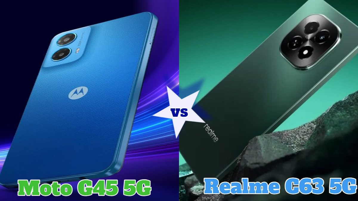 Moto G45 5G vs Realme C63 5G: मोटोरोला के न्यूली लॉन्च Moto G45 स्मार्टफोन को बाजार में मौजूद Realme C63 5G फोन से कड़ी टक्कर मिल रही है।