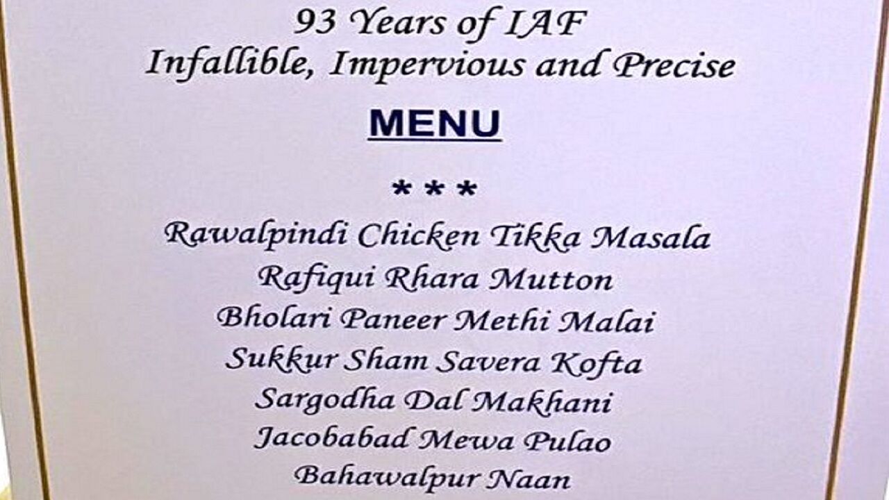 मेन्यू का टाइटल था- "भारतीय वायुसेना के 93 वर्ष: अचूक, अभेद्य और सटीक" (93 Years of IAF: Infallible, Impervious and Precise)।
