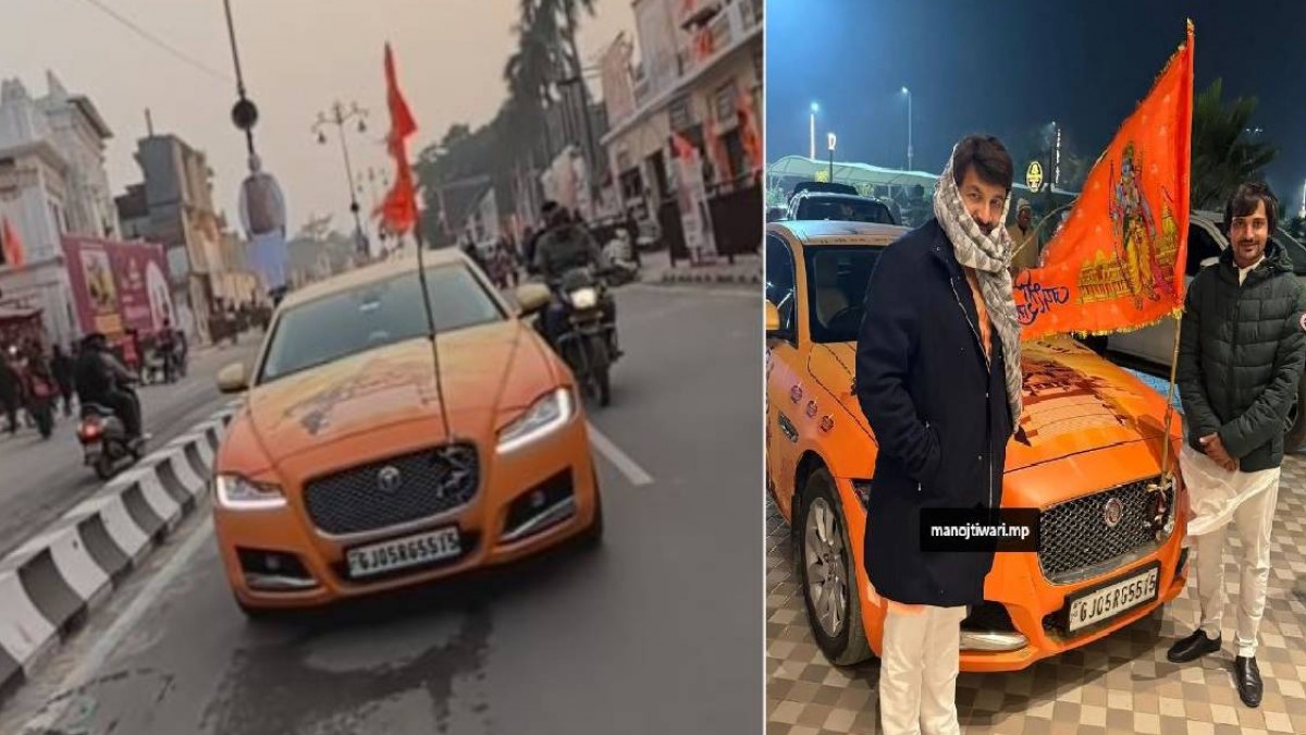 अयोध्या की सड़कों पर दौड़ी 'भगवा जगुआर', गुजरात के बिजनेसमैन ने श्रीराम मंदिर थीम पर सजाई लग्जरी कार; देखें VIDEO