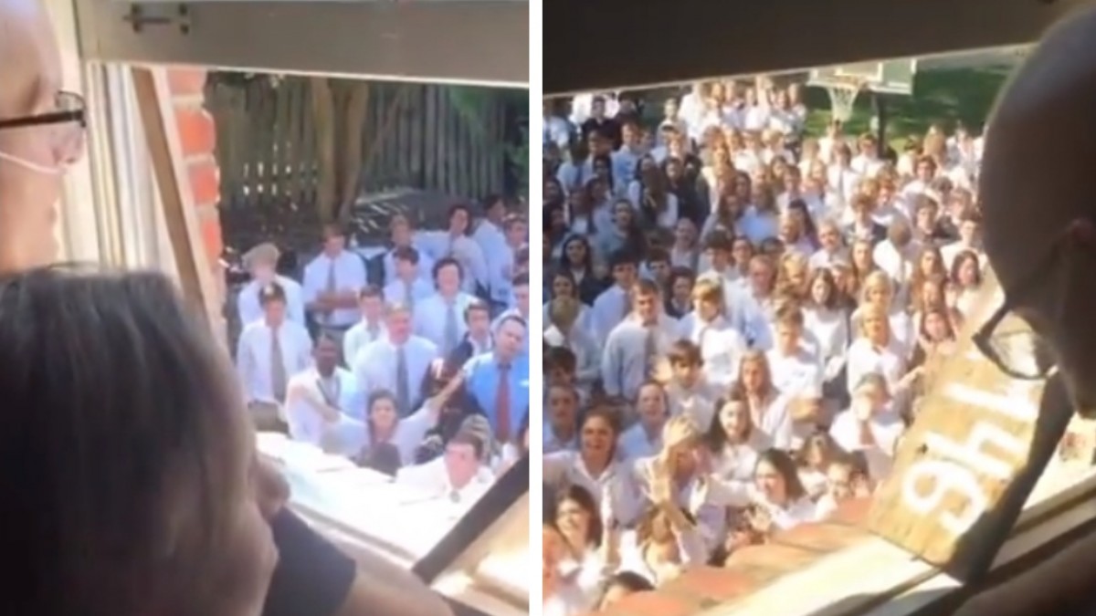 400 students gather outside the home of their cancer-stricken teacher to sing for him. He passed away 10 days later pic.twitter.com/raYmpK1196