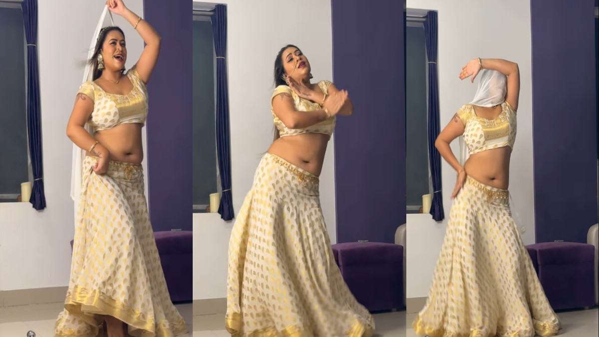 भाभी के बोल्ड अंदाज को देखकर सब हर कोई हैरान है। उनके डांस मूव्स और संतुलन का तालमेल देख हर कोई तारीफ भी कर रहा है। वीडियो में डांस के दौरान भाभी ने गोल्डन बार्डर के साथ लाइट पीच रंग का लंहगा पहना हुआ है और सिर को सफेद रंग के दुपट्टे से ढक रखा है।