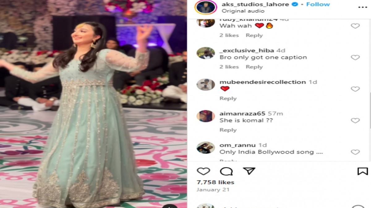 यूजर ने कमेंट किया कि ये पाकिस्तानी वेडिंग्स का कोरियोग्राफर एक ही होता है क्या ? सब एक जैसा ही डांस करते हैं। एक अन्य यूजर ने लिखा कि "मुझे नहीं पता क्यों, लेकिन मैं इसे बार-बार देखता हूं, आपके स्टेप्स बहुत पसंद हैं। एक अन्य यूजर ने कहा कि "प्यार करो," चौथे ने लिखा, "खूबसूरत! प्यार हो गया, बहुत अच्छा।