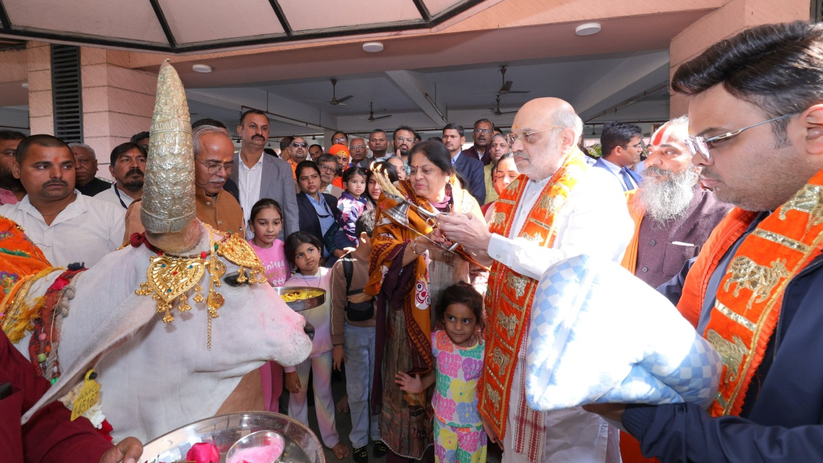 इस वीडियो में देखा जा सकता है कि केंद्रीय गृह मंत्री अमित शाह अपने परिवार के साथ गौ माता की पूजा कर रहे हैं। इस दौरान हाल ही में बच्चे के पिता बने जय शाह अपने बेटे को गोदी में लेकर खड़े हैं। गौ माता की आरती के बाद अपने पोते को आरती का स्पर्श दिया, तो जय शाह थोड़े प्रोटेक्टिव नजर आए और बच्चे को हल्का-सा पीछे खींच लिया। इस दौरान अमित शाह गुजराती में कहते हैं कि कुछ नहीं होगा, कोई नया नवेला बेटा नहीं है।