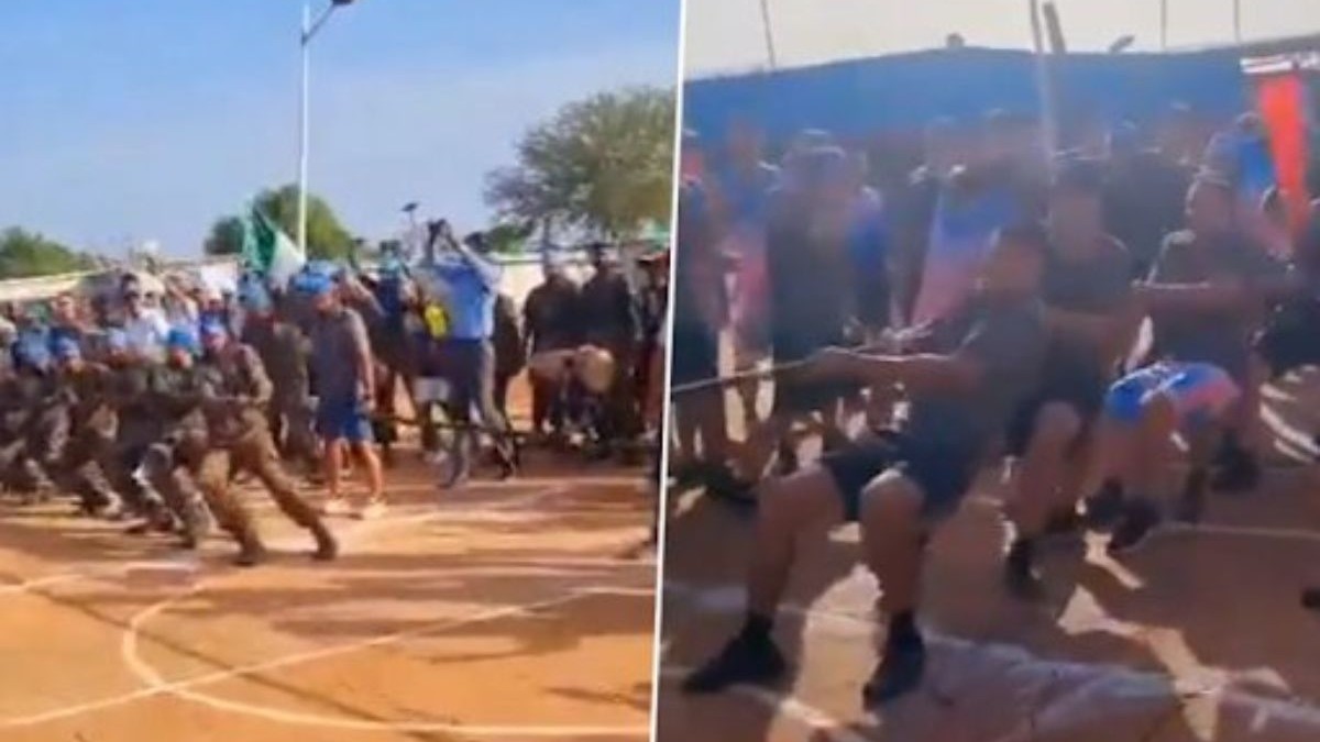 Tug of War Contest in Sudan: सूडान से 'देसी वीरों' यानी अपनी भारतीय सेना का एक ऐसा वीडियो सामने आया है, जो आपको गर्व से भर देगा। संयुक्त राष्ट्र शांति मिशन के तहत सूडान में तैनात भारतीय सैनिकों ने रस्साकशी यानी Tug Of War खेल में पस्त कर दिया। चीनी सैनिकों को करारी हार का सामना करना पड़ा। जीतने के बाद भारतीय जवानों ने जश्न मनाया। इंडियन आर्मी के अफसरों ने इसकी पुष्टि की है।