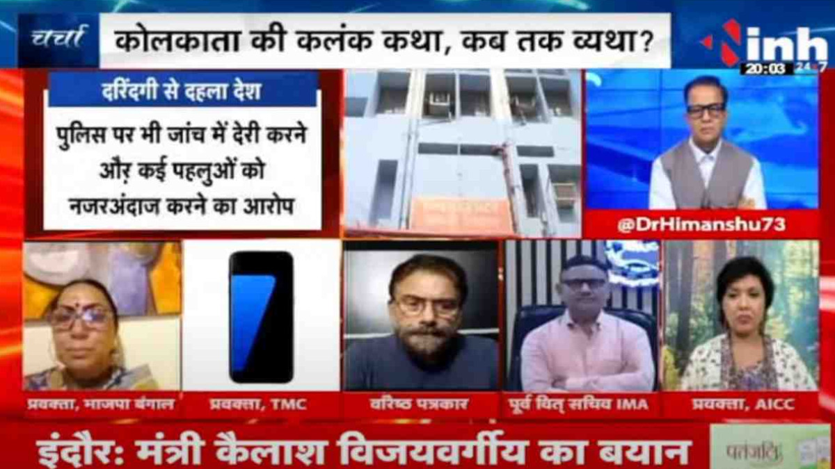 inh 24x7 के स्पेशल शो (चर्चा ) में देखिए एडिटर-इन-चीफ हिमांशु द्विवेदी के साथ कोलकाता की कलंक कथा...कब तक व्यथा...कैसे निर्भय हों बेटियां? चर्चा में टीएमसी की तरफ से मो जीशान, कांग्रेस से अनुपमा आचार्य, भाजपा से राधिका भट्टाचार्य शाह, वरिष्ठ पत्रकार ओंकारेश्वर पांडेय, पूर्व वित्त सचिव IMA डॉ. अनिल गोयल ने अपनी बात रखी।