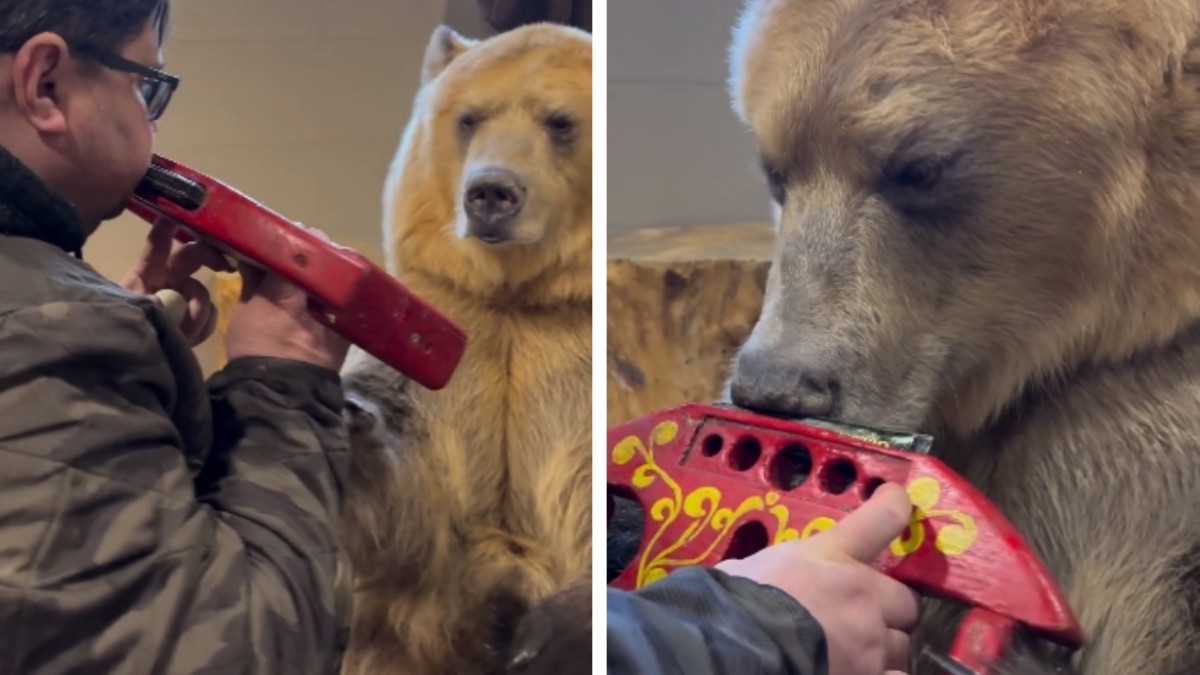 सोशल मीडिया पर वायरल वीडियो को इंस्टाग्राम पर @panteleenko_svetlana अकाउंट से शेयर किया गया है। इस वीडियो में एक शख्स के हाथों में हार्मोनिका है और वो अपने पालतू भालू के सामने उसे बजा रहा है। इसके बाद शख्स ने हार्मोनिका भालू को दे दिया। जिसे पहले भालू ने कुछ सेकंड तक देखा और उसके बाद मालिक की नकल करते हुए बाजा बजाने लगा।