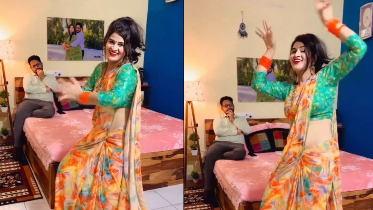 Bhabhi Dance Video: पति बेड पर बैठा रहा पत्नी सामने बॉलीवुड सॉन्ग पर ठुमके लगाती रही। यह वीडियो एक्स पर वायरल हो रहा है। इसे हजारों लोग देख चुके हैं।