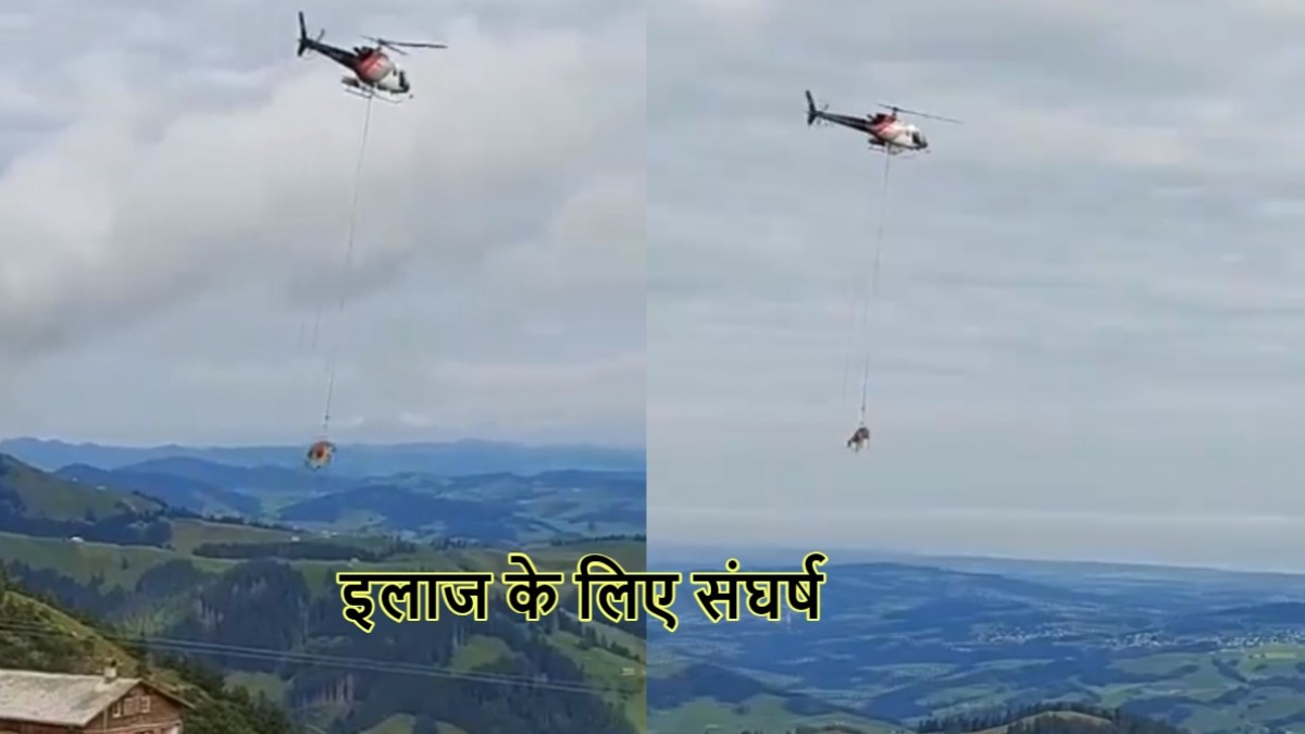 स्विट्जरलैंड में गाय को इलाज के लिए हैलीकॉप्टर पर रस्सी से लटकाकर अस्पताल ले जाया गया। इंटरनेट पर वायरल हो रहे वीडियो के बाद लोगों ने इस तरीके को लेकर अपना आक्रोश जताया है। पढ़ें पूरा खबर..।