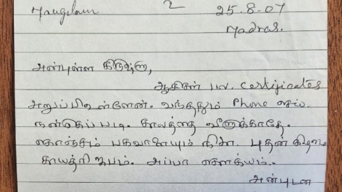 सोशल मीडिया पर इस लेटर को बेटे ने ही शेयर किया है। इसे इंस्टाग्राम पर श्रीकृष्ण स्वामीनाथन ने अपने अकाउंट @swamikrish2001 से शेयर किया है। बहुत कम शब्दों में लिखे इस खत में मां की बेटे को लेकर चिंता और सीख साफ झलक रही है।