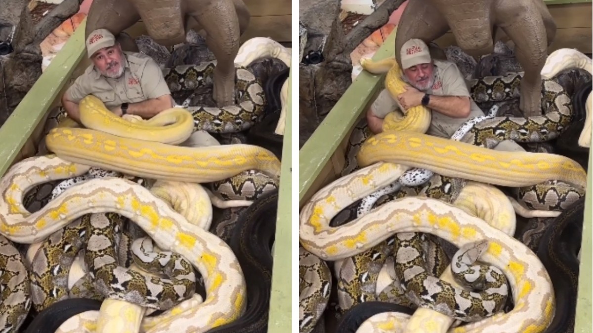 दिल थाम लें: चारों ओर थे अजगर..उनके बीच बैठ गया शख्स, डर नहीं; चेहरे पर थी मुस्कान, दिमाग हिला देगा VIDEO