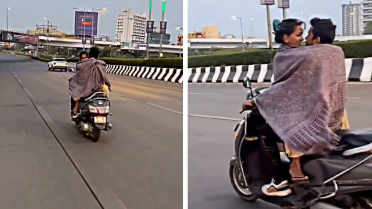 Mumbai Couple Viral Video: प्यार करते हुए लोगों को आपने गार्डन या किसी सार्वजनिक जगह पर तो देखा ही होगा, लेकिन क्या किसी कपल को चलते स्कूटर पर ऐसा करते देखा है? पढ़ने में ये बात अजीब लग सकती है, लेकिन मुंबई की सड़क पर हाल ही में ऐसा ही एक नजारा सामने आया है। सोशल मीडिया पर वायरल हो रहे एक वीडियों में एक कपल चलती गाड़ी में एक दूसरे को गले लगाते नजर आ रहे हैं। इस वीडियो को किसी राहगीर ने बनाया और सोशल मीडिया पर वायरल कर दिया है।