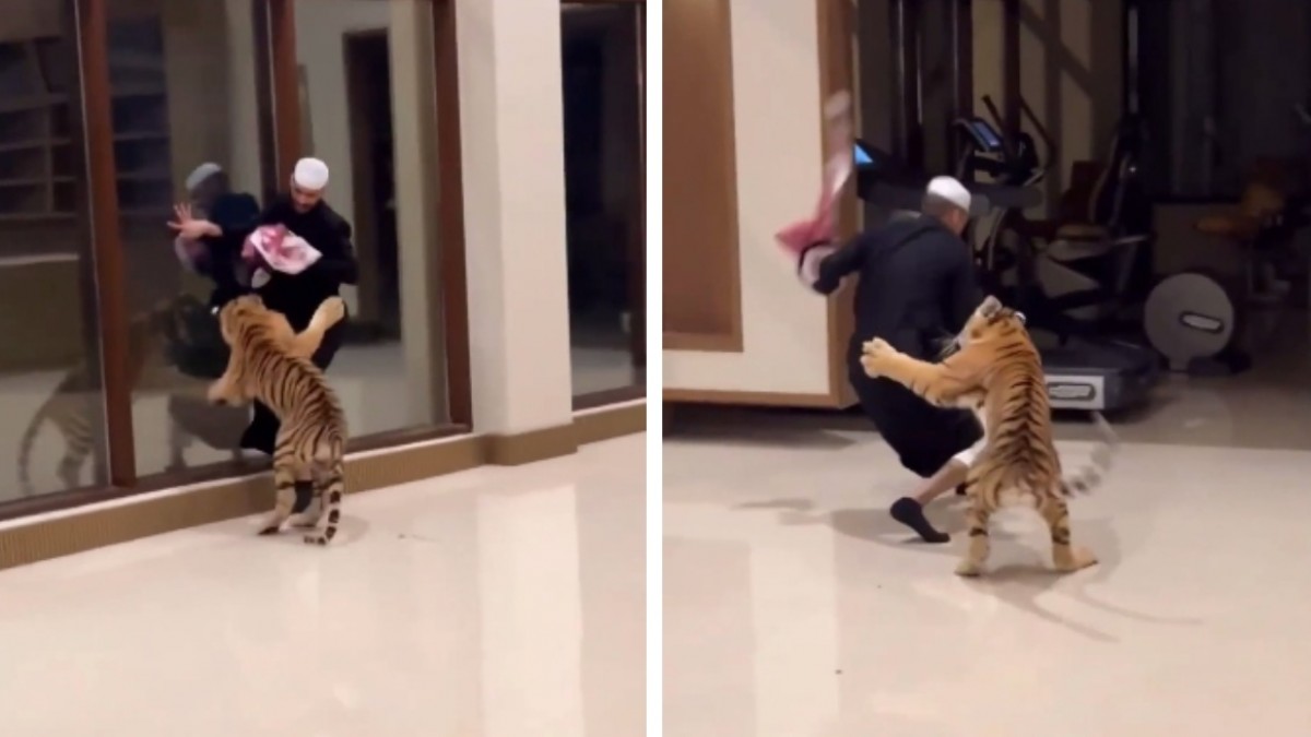 Tiger Viral Video UAE: सोशल मीडिया पर एक पालतू टाइगर का वीडियो वायरल हो रहा है, जो कि एक आलीशान घर में एक युवक का पीछा कर रहा है।