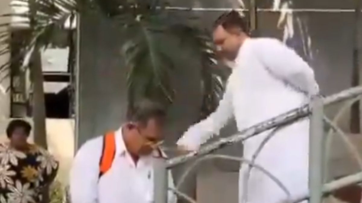 स्टूडेंट्स को डंडे से मारकर आशीर्वाद दे रहे प्रिंसिपल