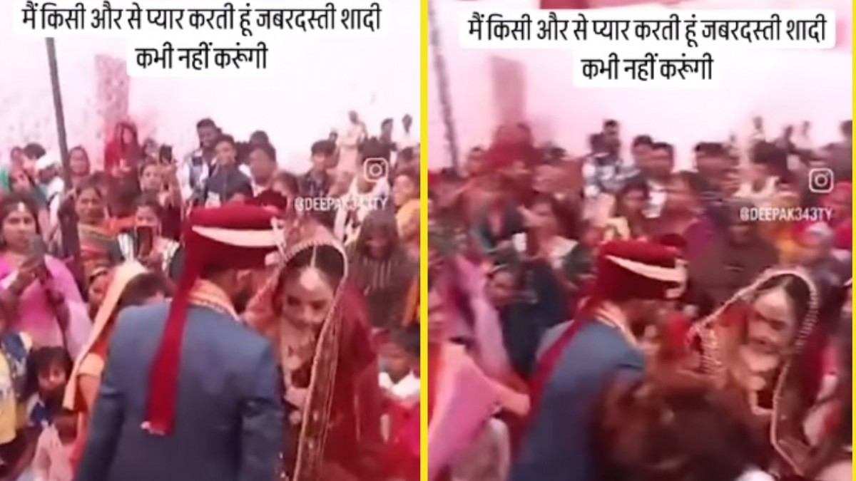 दरअसल, इंस्टाग्राम पर वायरल एक वीडियो में एक शादी समारोह चल रहा है। वीडियो में दुल्हन को स्टेज पर चढ़ाने के लिए दूल्हा अपना हाथ देता है तो दुल्हन दूल्हे को पकड़ कर स्टेज से नीचे खींच लेती है, जिससे लगता है कि दुल्हन इस शादी से खुश नहीं है।