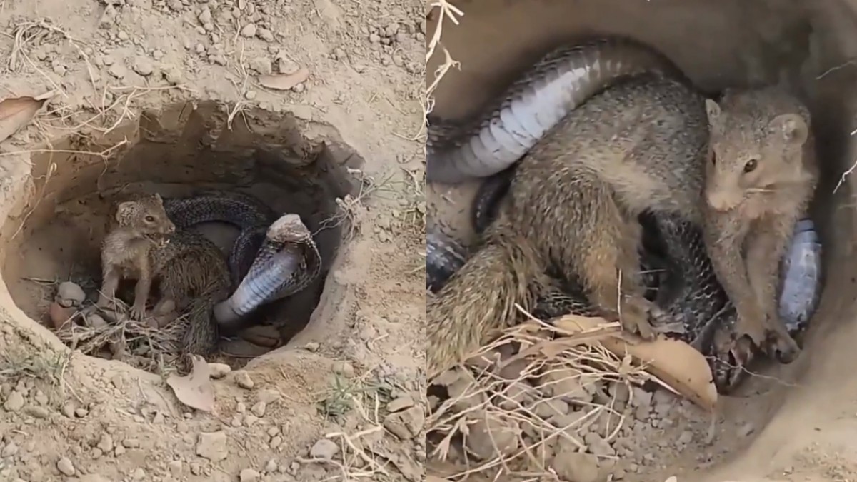 Snake vs Mongoose fight video: सांप के मुंह पर पैर रखकर बैठ गया नेवला, बिल में ही आई गई कोबरा की मौत