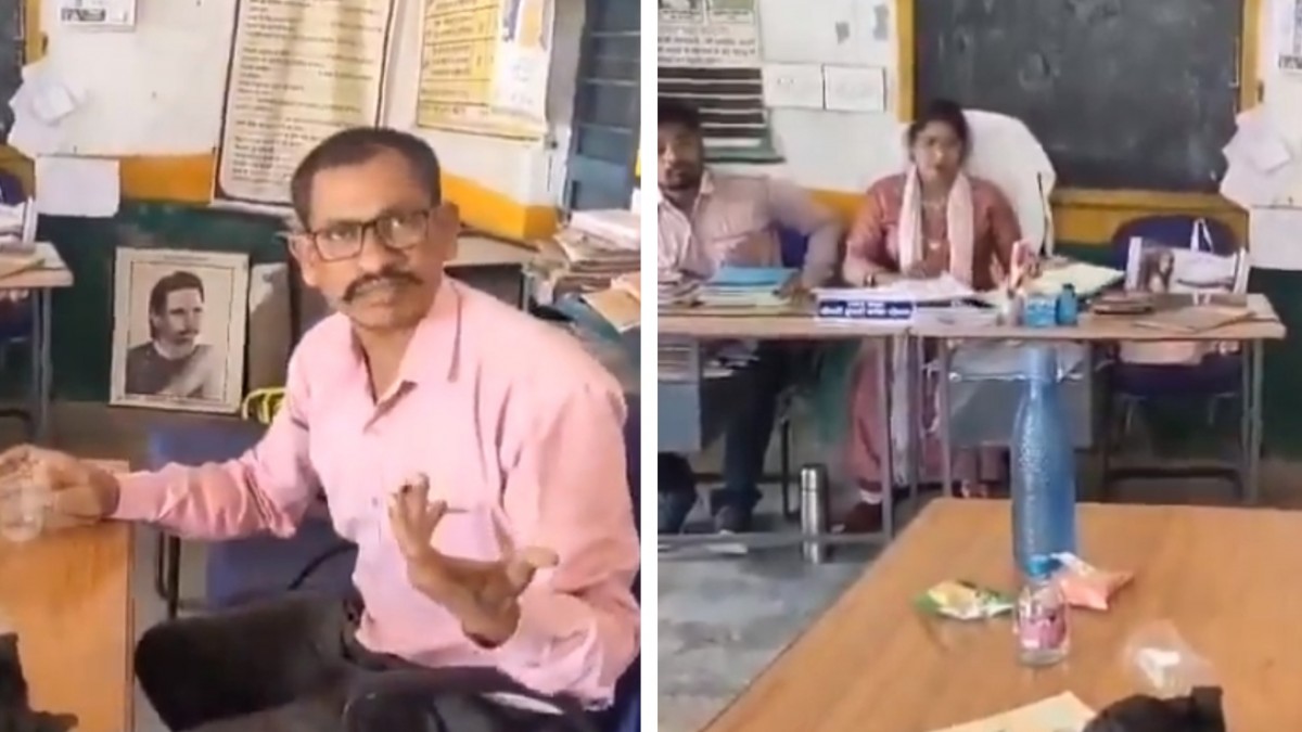 VIDEO : महिला टीचर के सामने शिक्षक ने पी शराब, कैमरे पर बोले- जिंदगी में बहुत गम, मचा बवाल